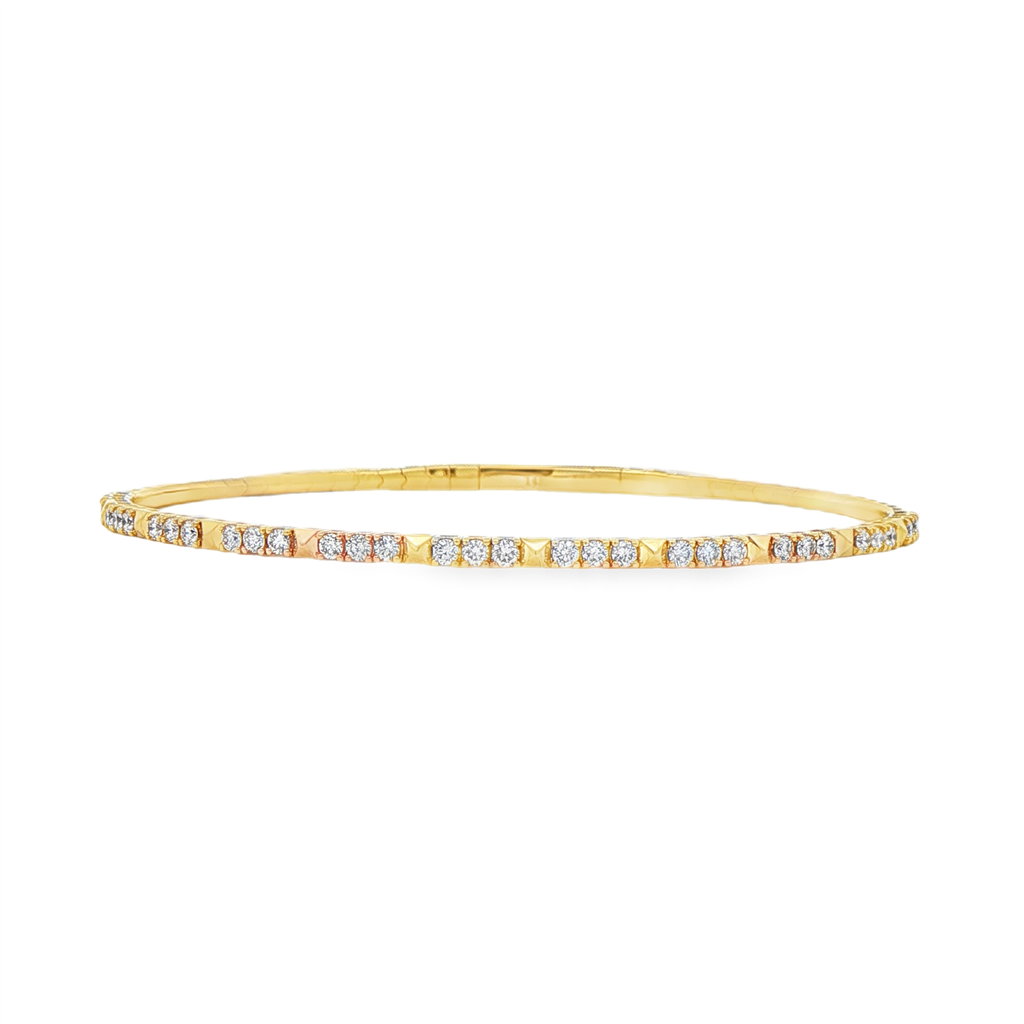 14K Yellow Gold Thick Studded Flexi Natural Diamond Bangle – 0.85ctw, 5.3g