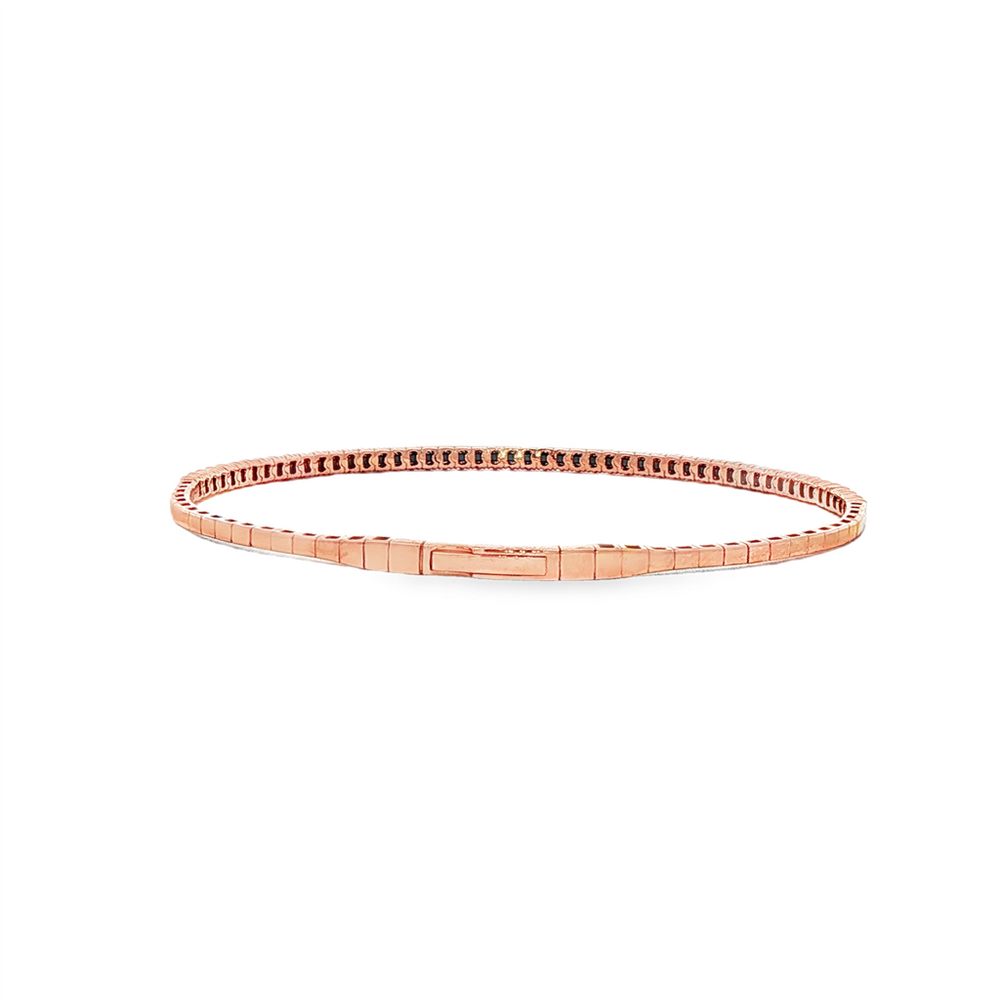 Crafted in 14K rose gold, this 2.5mm flexible bracelet is set with 50 natural diamonds totaling approximately 0.75 carats. Weighing 5.4 grams, it offers a refined balance of brilliance and comfort—perfect for both everyday wear and layering with other favorites.