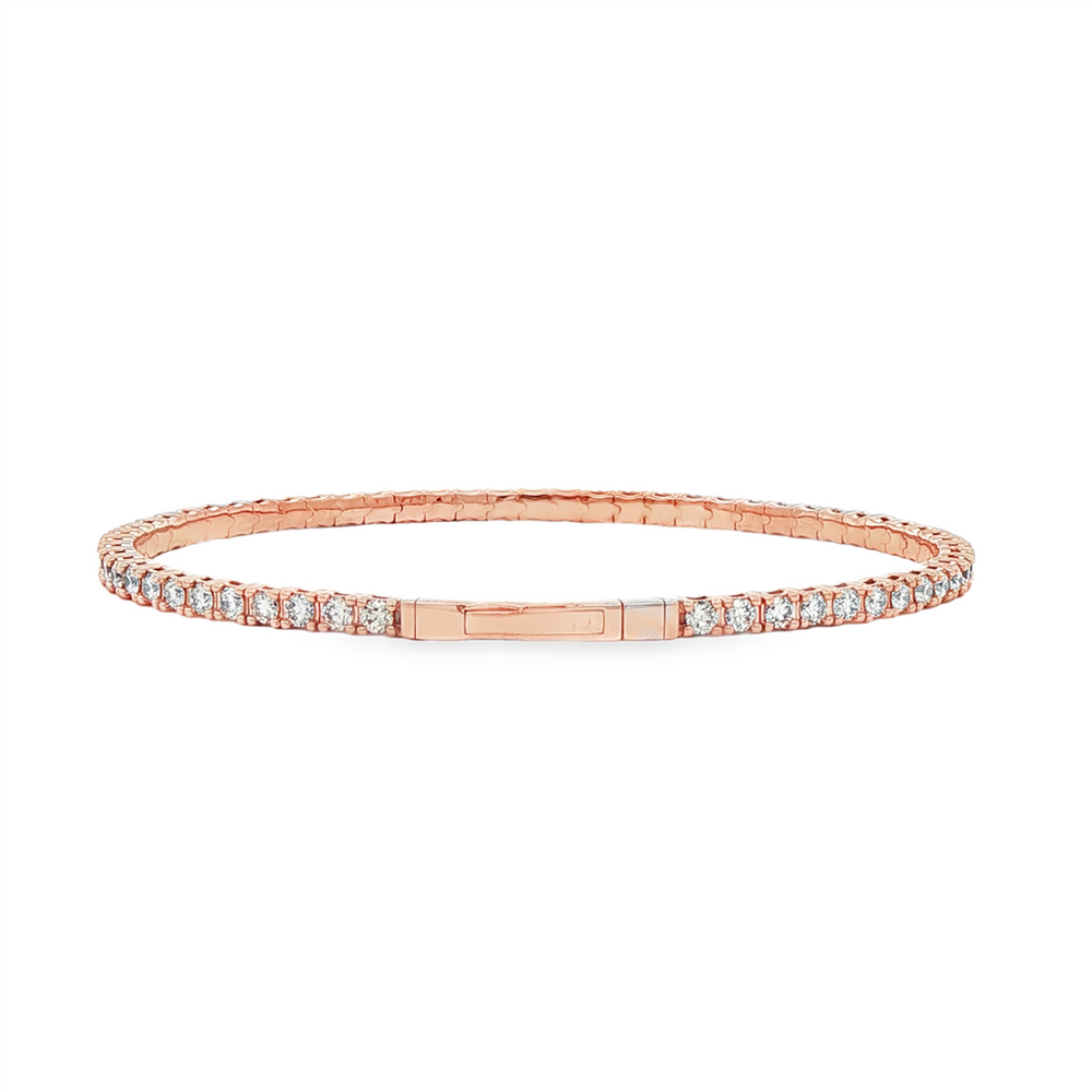 Crafted in 14K rose gold, this 2.6mm flexible bracelet is set with 59 natural diamonds totaling approximately 2.60 carats. Weighing 7.4 grams, it showcases impressive brilliance with a comfortable, flexible design perfect for both special occasions and everyday elegance.
