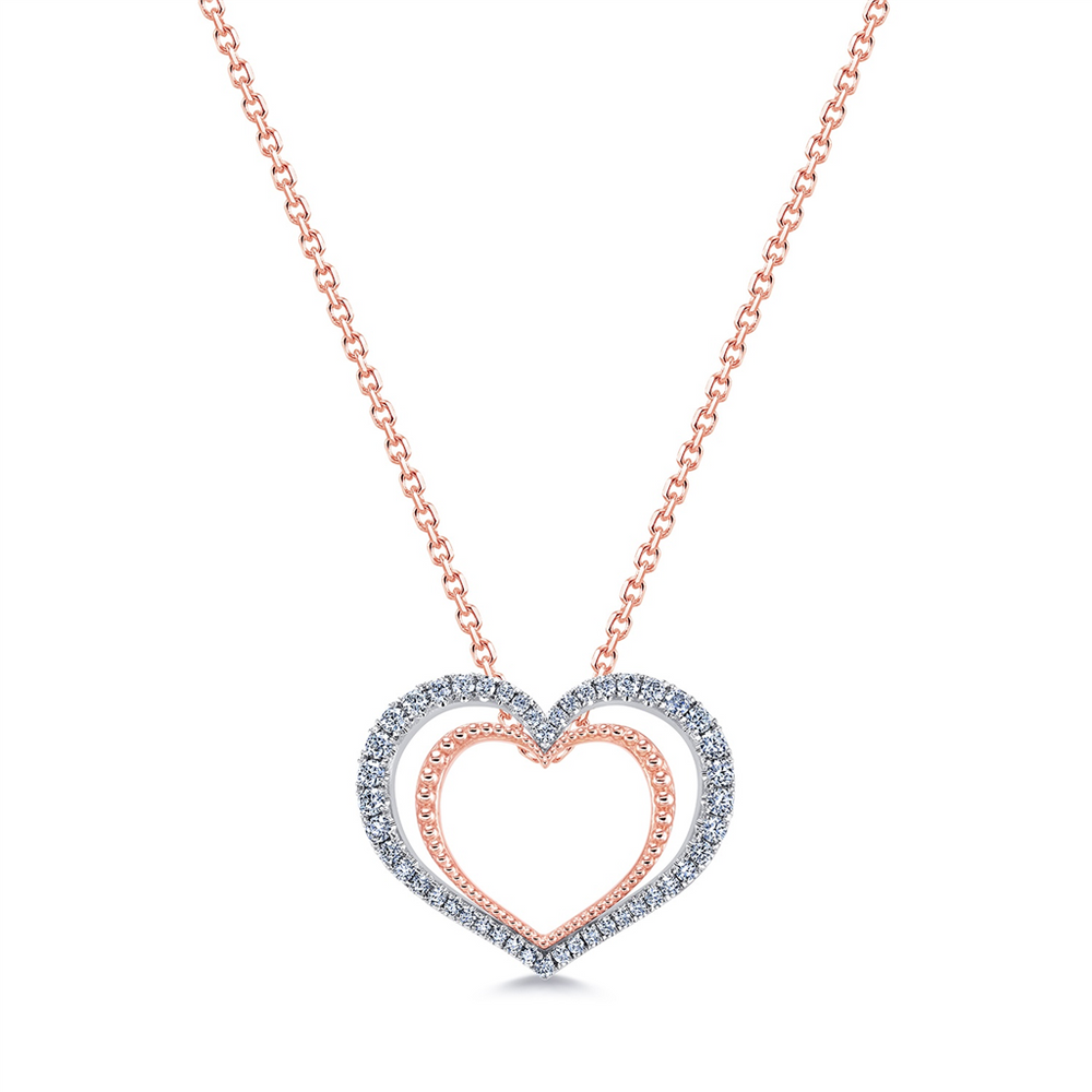 14K Rose & White Gold Double Heart Diamond Pendant 0.46ctw.