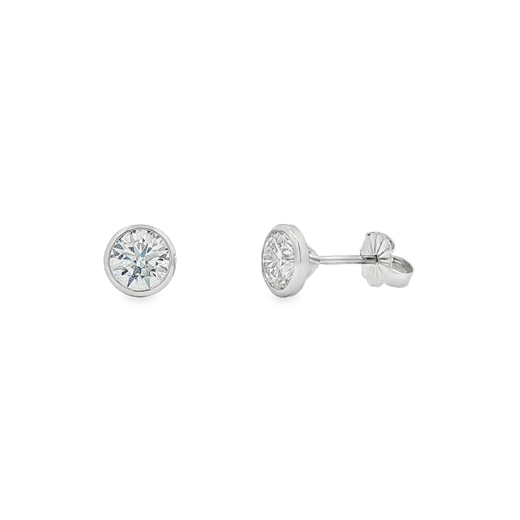 14K White Gold Bezel Set Lab Grown Diamond Stud Earrings – 2.08ctw.