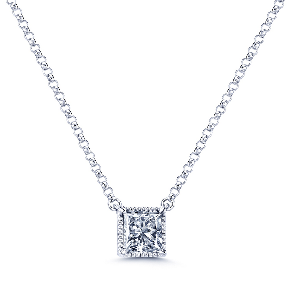 14K White Gold 1.00ct Princess Cut Diamond Pendant