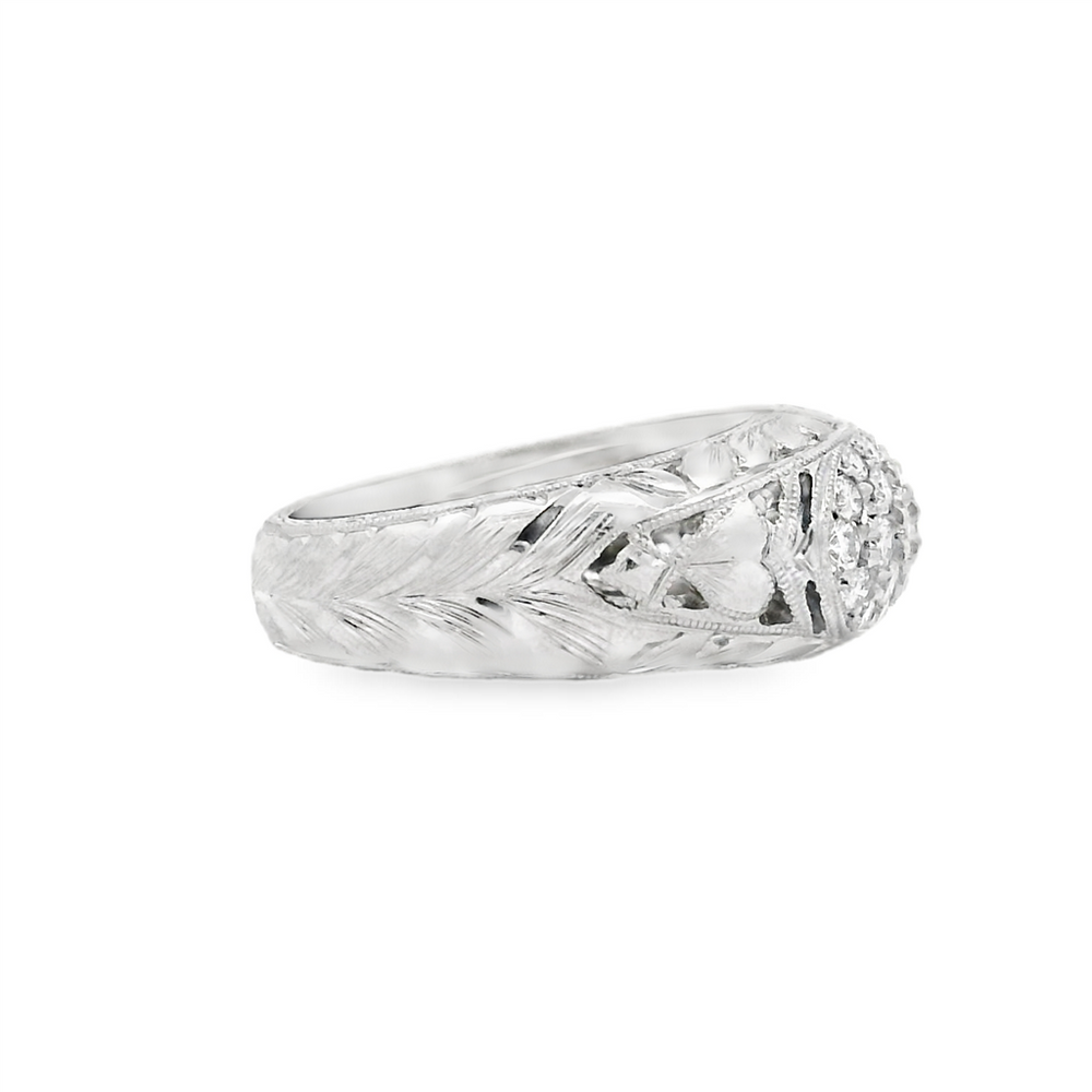 Platinum Hand-Engraved Dome Diamond Ring – 0.81ctw.