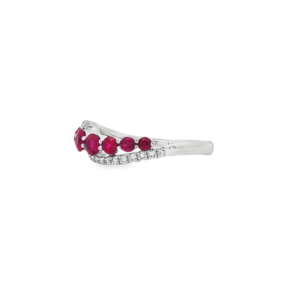 Platinum Ruby & Diamond Ring – 0.85ctw Rubies, 0.16ctw Diamonds