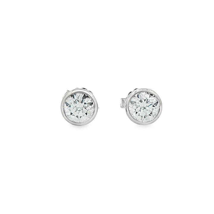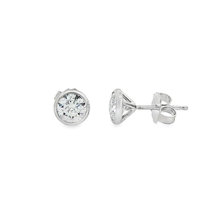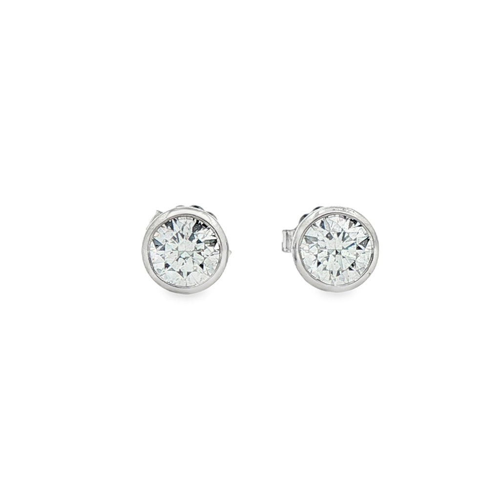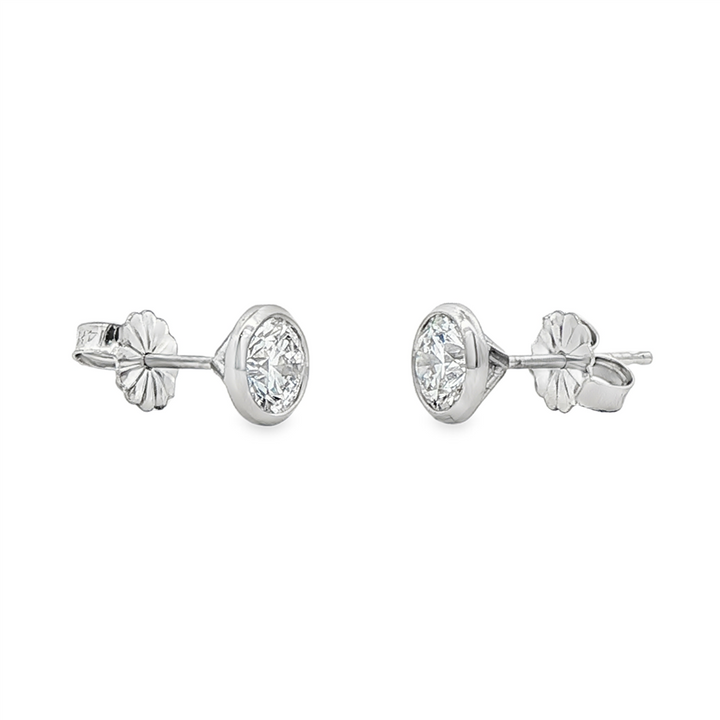 14K White Gold Bezel Set Round Lab Grown Diamond Earrings – 1.04ctw.