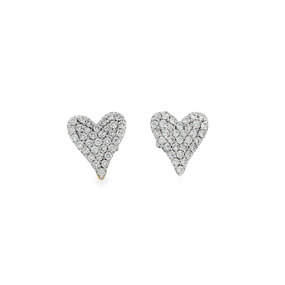 14K White Gold Natural Diamond Pave Heart Stud Earrings – 0.61ctw.