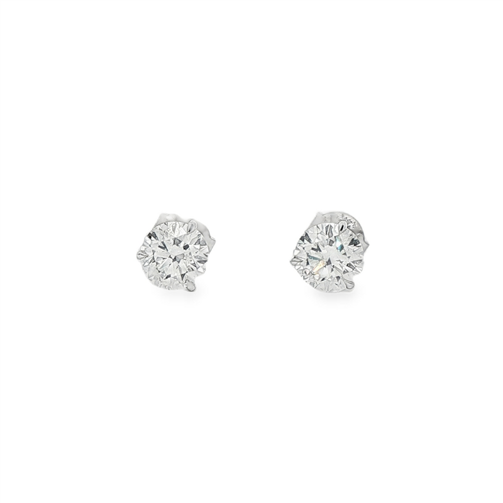 Set with two lab grown round brilliant cut diamonds totaling 1.59 carats, these timeless studs are crafted in 14K white gold. Graded D color and VS1 clarity, the diamonds offer exceptional brilliance and eye-clean quality. Secured in classic three-prong martini settings with standard friction backs.