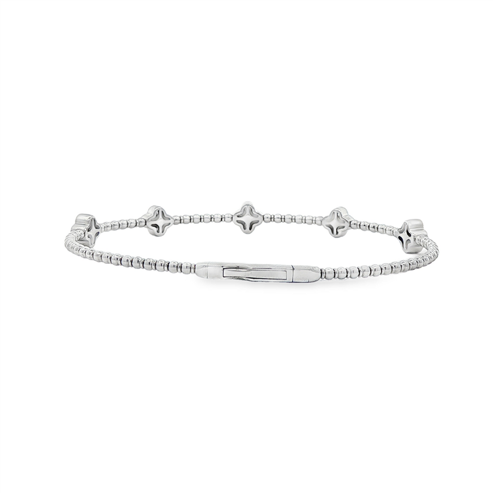 14K White Gold Large Flower Diamond Flexi Bangle – 0.55ctw.