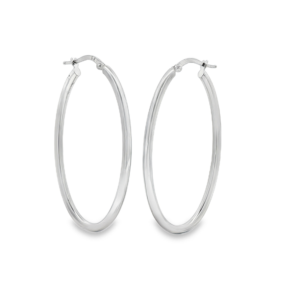 14K White Gold Large Oval Hoop Earrings – 2.5g