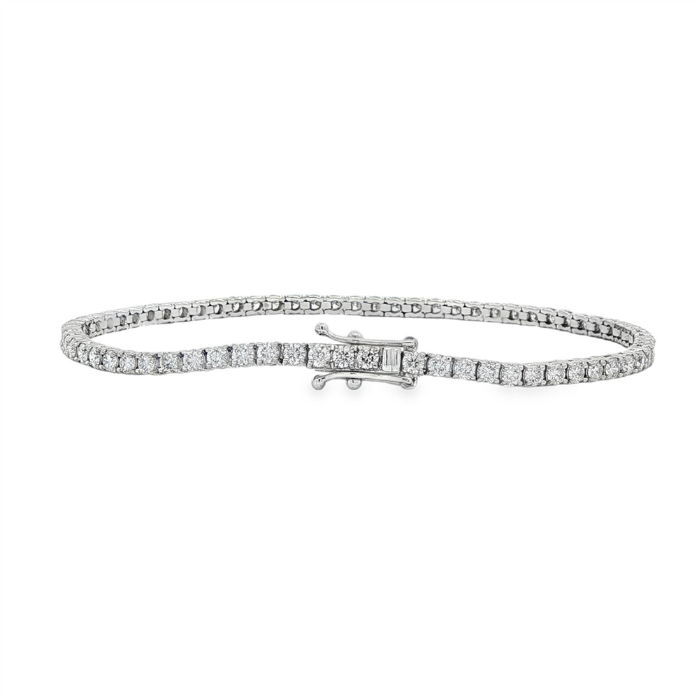 This classic 7-inch tennis bracelet is crafted in 14K white gold and set with 69 natural round brilliant cut diamonds totaling approximately 3.05 carats. Each diamond is carefully selected for its sparkle and brilliance, making this timeless design a perfect choice for both everyday elegance and special occasions.