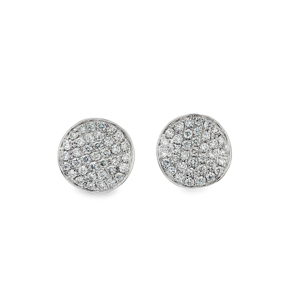 14K White Gold Wavy Disc Natural Diamond Stud Earrings – 1.08ctw.