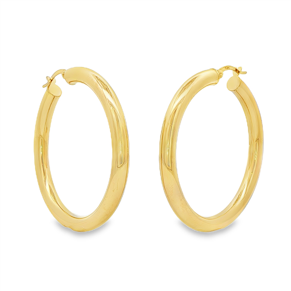 14K Yellow Gold Light Hoop Earrings 4mm x 30mm – 4.9g