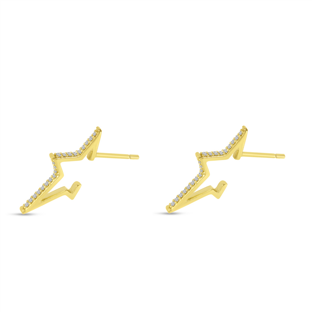 14K Yellow Gold Star Design Huggie Earring 0.14ctw.