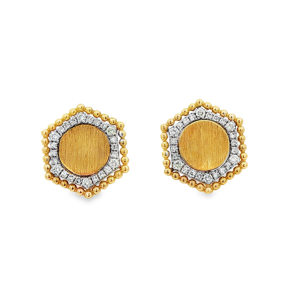 14K Yellow & White Gold Natural Diamond Hexagon Earrings – 0.37ctw.