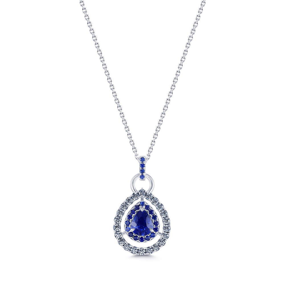 14K White Gold Pear-Shaped Sapphire & Diamond Pendant – 2.58ctw.