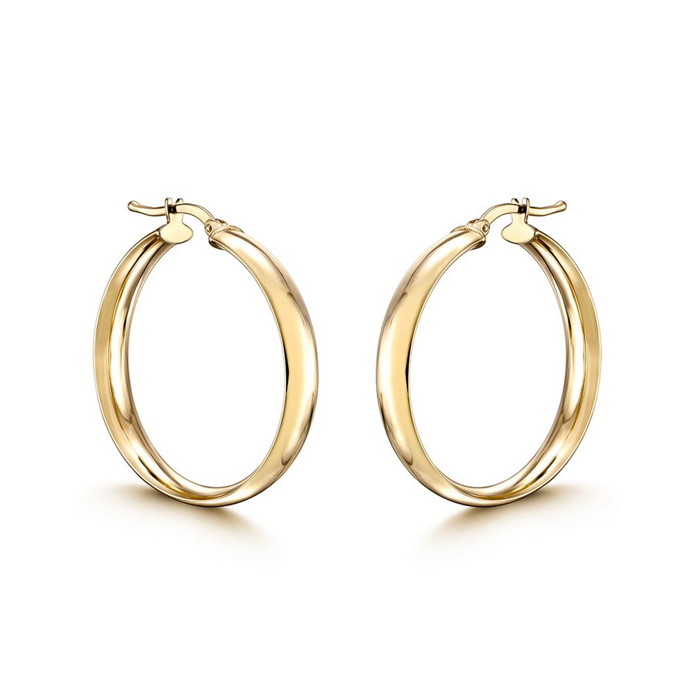 14K Yellow Gold Flat Hoop Earrings 5mm x 25mm – 3.3g