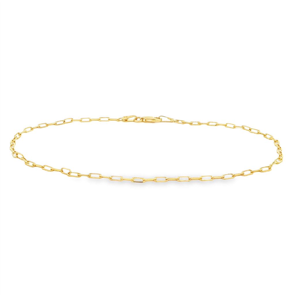 This 14K yellow gold anchor anklet features a refined 1.85mm width with classic anchor-style links that create a clean, structured look with subtle nautical character. Measuring 10 inches in length and weighing 2 grams, it offers a lightweight, comfortable feel with a polished finish that reflects light in warm, elegant flashes. The rich tone of yellow gold enhances the crisp link design, making this anklet perfect worn on its own for a minimalist statement or layered with other anklets for added dimension. Timeless, versatile, and easy to wear, this anchor anklet is a beautiful addition to any fine jewelry collection.