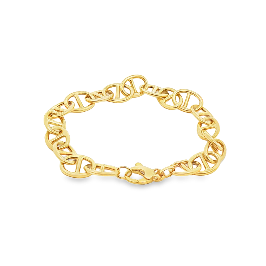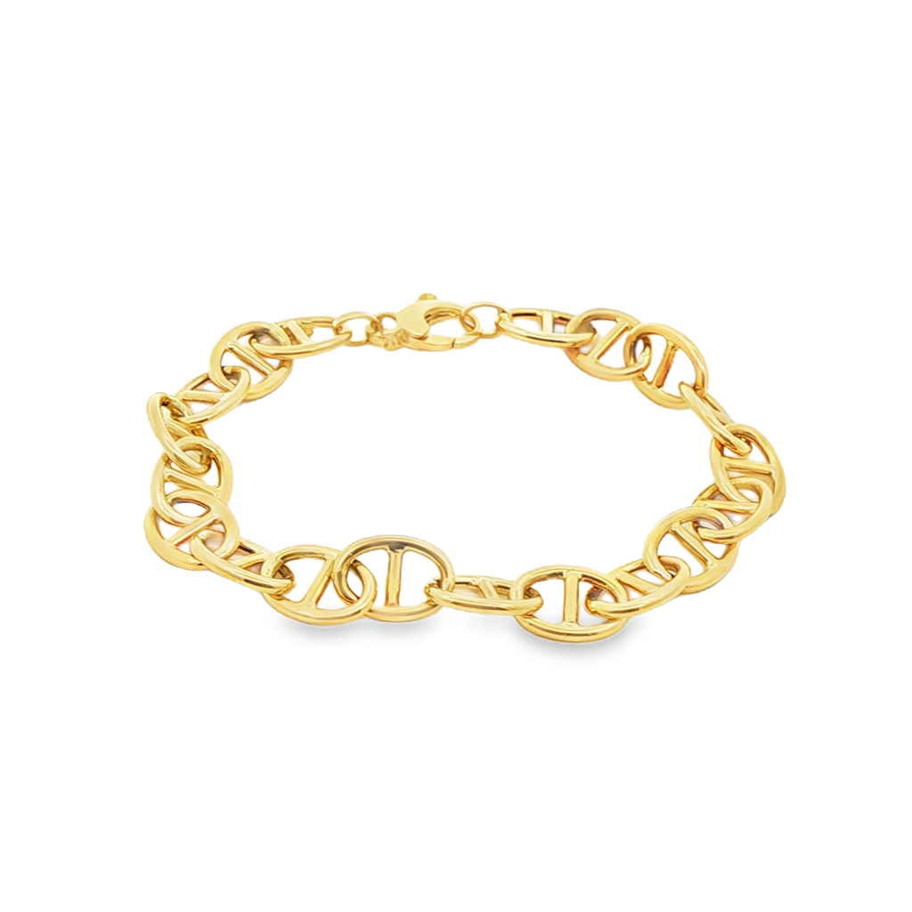 14K Yellow Gold Fancy Link Hollow Bracelet – 8mm, 7.5", 6.9g