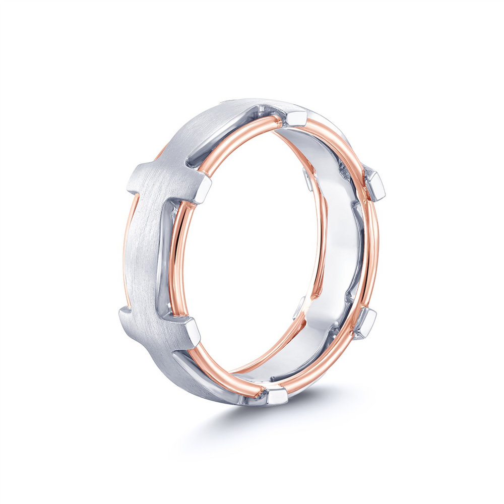14K White & Yellow Gold Unique Men’s Wedding Band – 7.8mm