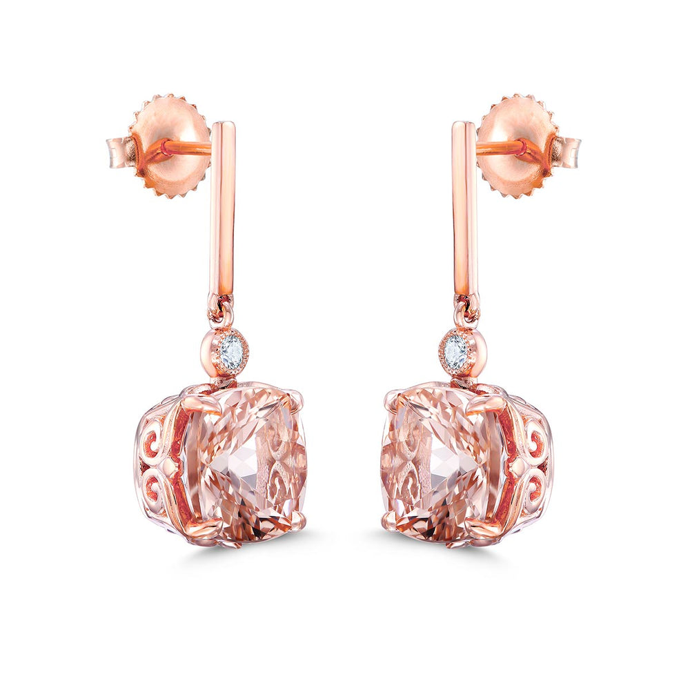 14k Rose Gold Earrings - Featuring 3.19ctw Morganites With Diamonds