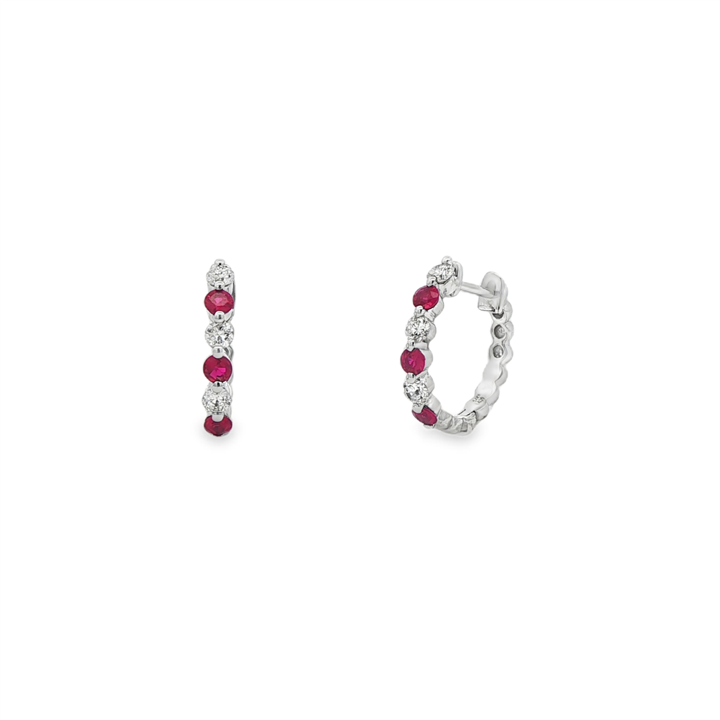 14K White Gold Diamond and Ruby Huggie Earrings – 0.42ctw.