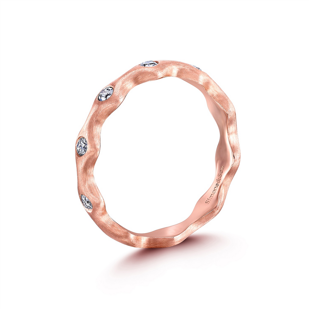 14K Rose Gold Diamond Wavy Wedding Band - 0.22ctw.