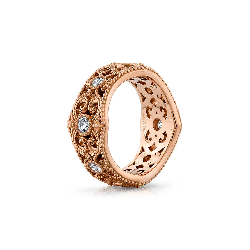 14k Rose Gold - Diamond Lace Wedding Band .64ctw