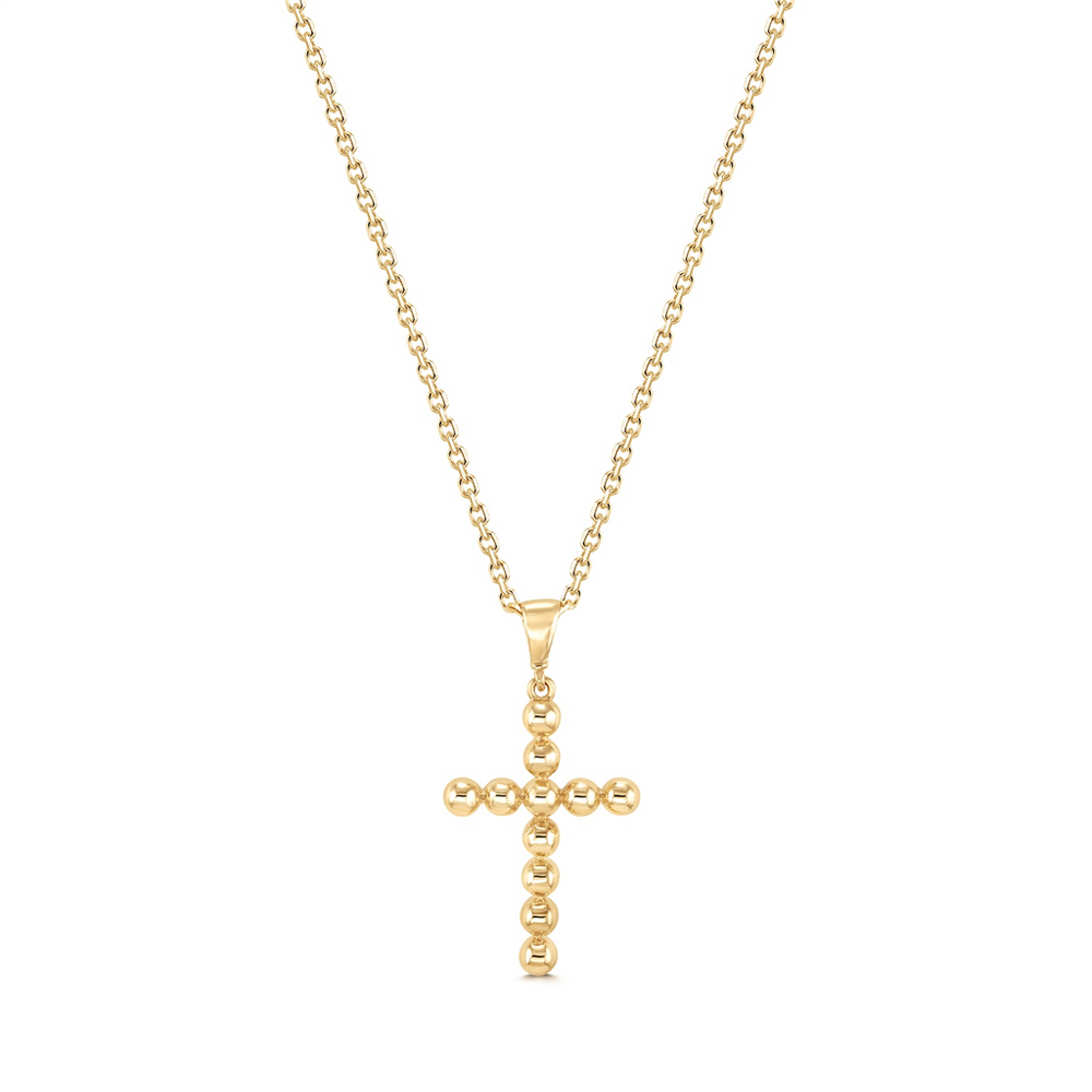 4K Yellow Gold Large Bead Cross Pendant – 1.6g